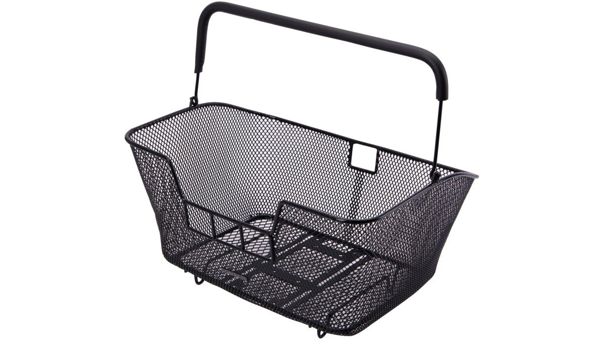 CONTEC fietsmand, achterop "Lungo Multi" Presentatieverpakking, maten (L x B x H): 30 x 43 x 23 cm, afneembaar, staal, fijnmazig, met universeel gatenpatroon in de bodem van de mand voor de eenvoudige montage van een MIK, Racktime of AVS adapterplaat (adapter bij levering niet inbegrepen) Afgeschuind, stabiel frame, hengsel met soft grip, met reflex-logo, met voetjes aan onderkant, compatibel met CONTEC "FlavourBelt" (0.738.191/6) voor de ongecompliceerde beveiliging van de bagage i.› zwart