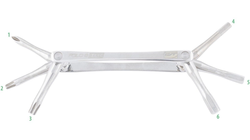 CONTEC multifunctie-tool "TFR - Fold 6" Presentatieverpakking, automatische indexering 90 of 270 graden, gemaakt van hoogwaardig RVS SUS420, 90 x 34 mm, 77 g 6 functies: 1 = Kruiskopschroevendraaier 2 = T25 zespunt ster-profiel 3 = T30 zespunt ster-profiel 4 = 4 mm binnenzeskant-sleutel 5 = 5 mm binnenzeskant-sleutel 6 = 6 mm binnenzeskant-sleutel i.› zilver