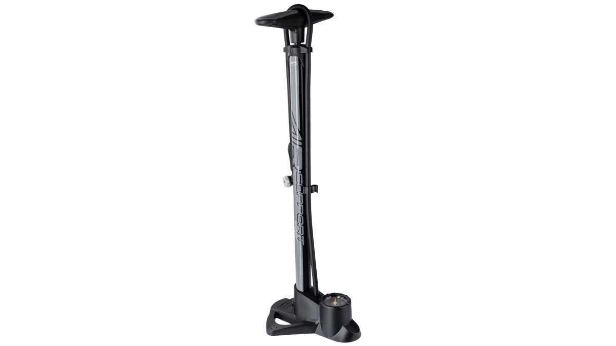 CONTEC vloerpomp "Air Support Sport" 11 bar / 160 psi, voor alle ventielen, staal / kunststof Presentatieverpakking, met stabiele kunststof voet, overzichtelijke manometer met psi- en bar-weergave, T-greep met kraton-rubber gecoat, incl. adapter voor ballen en luchtbedden, Twin-kop i.› zwart / coolgrey