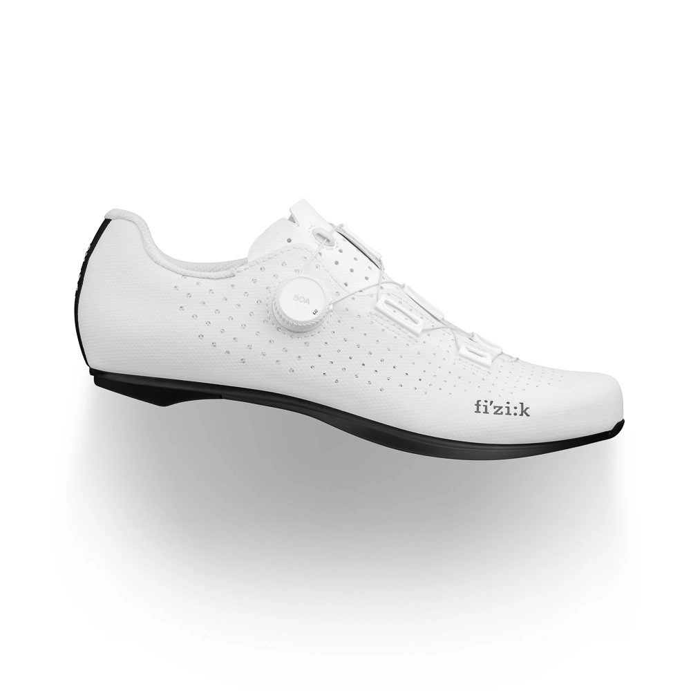 Een minimalistische carbon racefiets-schoen voor ultieme prestaties en comfort. De Tempo Decos van fizik is de schoen voor iedereen die het maximale uit elke kilometer wil halen. Deze schoen combineert prestaties en comfort op een stijlvolle, minimalistische manier, een instant klassieker voor rijders buiten het strenge profpeloton. Met de Decos heeft fizik hun befaamde minimalistische ontwerp naar een nieuw niveau getild. Het resultaat? Een pure fietsbeleving, perfect voor epische bergtochten, lange granfondos en alles daartussenin. Het gestroomlijnde bovenwerk is gemaakt van een duurzaam, polyurethaan-gelamineerd materiaal, gecombineerd met ademend mesh. Dit geeft langdurige ondersteuning waar je voeten dat het meest nodig hebben. Dankzij de praktische Li2 BOA-sluiting, die snel en nauwkeurig aan te passen is, zit de schoen altijd precies goed. Onder de voet bevindt zich de geheel nieuwe R3 carbon zool, ontworpen om gewicht te besparen zonder in te leveren op stijfheid. Met een stijfheidsindex van 10 zorgt deze zool voor optimale krachtoverdracht. Twee brede ventilatieopeningen en diepe interne kanalen zorgen voor een verkoelende luchtstroom, zodat je voeten comfortabel blijven, zelfs tijdens lange ritten. De zool heeft een vernieuwde positie voor de schoenplaatjes, afgestemd op de nieuwste fietstrends. Dit ontwerp vermindert kniebelasting en optimaliseert je trapbeweging, vooral in een agressieve, aerodynamische zithouding. Of je nu houdt van lange ritten door de bergen of snelle tochten met vrienden, de Tempo Decos Carbon biedt je prestaties en comfort op het hoogste niveau.
