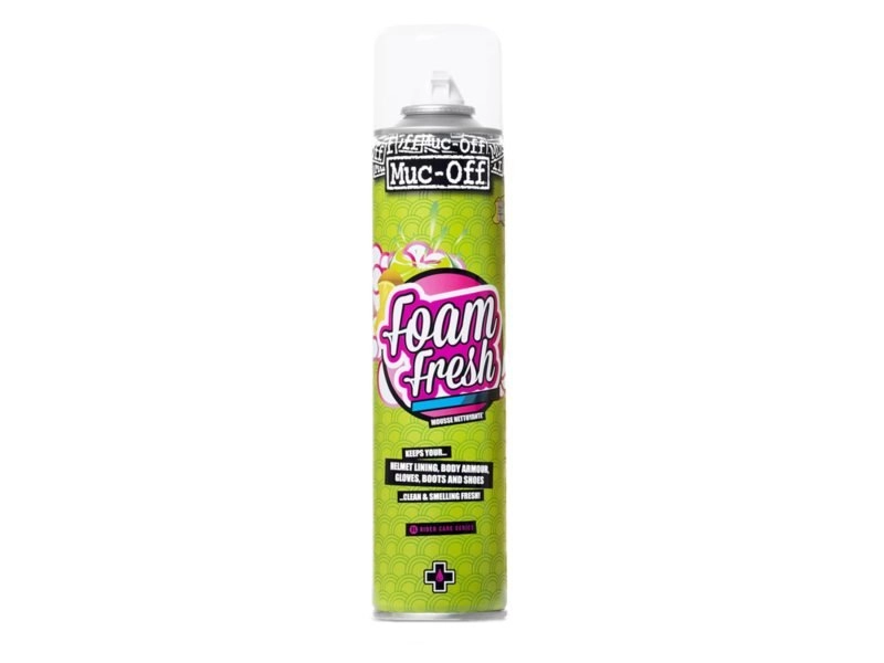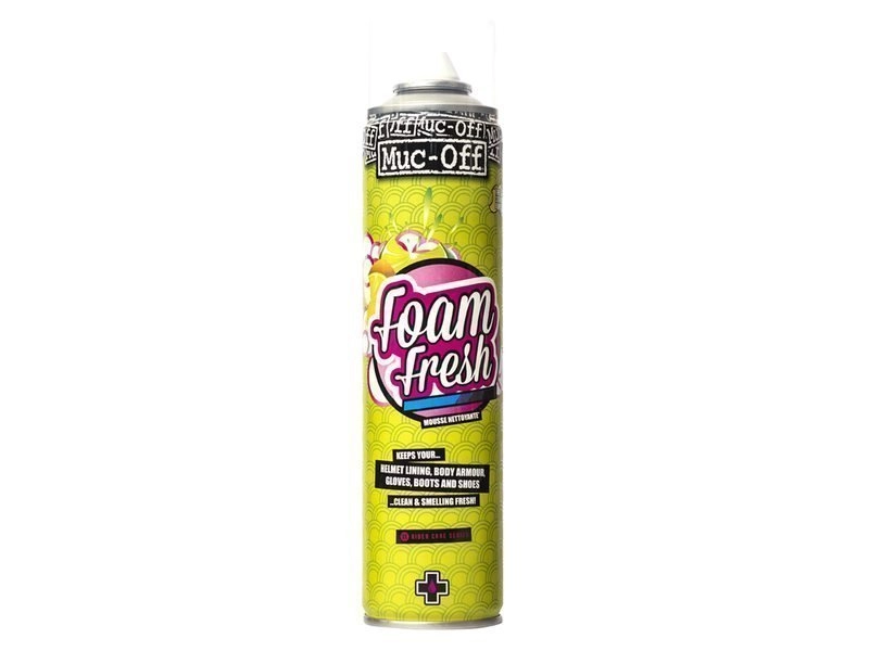 Muc-Offs Foam Fresh is een zeer effectieve, makkelijk te gebruiken foam schoonmaker dat ideaal is voor helmen of andere zachte materialen dat in contact komt met de drager. Foam Fresh vormt direct de foam, wat zonder te beschadigen van je helm vriendelijk het vuil verwijdert en een aangename geur achterlaat. Zelfs de spullen die op het oog schoon lijken hebben baat bij het gebruik van de FoamFresh met een unieke formule. Het is ook ontzettend geschikt voor gebruik op handschoenen, schoenen en vergelijkbare producten.