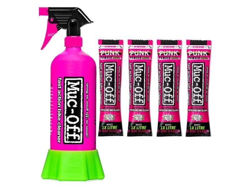 Bijna iedereen is wel op de hoogte van de fantastische werking van de Fast Action Bike Cleaner van Muc-Off. Maar naast de fantastische schoonmaakproducten die Muc-Off produceert zetten zij zich ook heel erg in voor een schoner milieu en werken zij er dagelijks hard aan om hun C02 voetafdruk te verkleinen. Veel van de producten die Muc-Off uitbrengt zijn al niet schadelijk voor het millieu. Maar Muc-Off is met het product Punk Powder en de bijbehorende Bottle For Life naar een nieuw niveau gestegen. Niet alleen is het product zelf niet schadelijk, dit geldt ook voor de verpakking en zelfs de inkt op de verpakking is van biologisch materiaal. Muc-Off heeft er drie jaar over gedaan om dit product te ontwikkelen en het resultaat mag er absoluut zijn. Punk Powder bezit de zelfde superieure eigenschappen van Muc-Off's Bike Cleaner, maar dan in poeder vorm. Hierdoor komt er in het hele productieproces geen plastic én water aan te pas. Je kan het poeder zelf mengen met water -zelfs water uit een schoon beekje- en hiervoor je bestaande flessen gebruiken. Wil je nog een stap verder gaan, kan je ook kiezen voor de Bottle For Life in combinatie met de Punk Powder. Deze fles is gemaakt van aluminium en kan keer op keer opnieuw gebruikt worden. Het heeft een millieuvriendelijke silliconen basis voor meer stabiliteit wanneer je de fles op een schuine ondergrond neerzet.