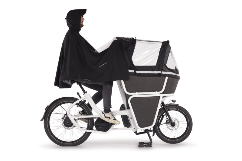 Dankzij de Poncho heb je geen excuses meer om de auto te nemen. De Urban Arrow kan met een handige klittenband strip worden bevestigd aan alle Urban Arrow regenhuiven. Op die manier zit jij als fietser ook lekker droog en straal je, ondanks de regen. Nog een unieke feature is het doorzichtige raam aan de voorzijde waardoorheen je goed zicht blijft houden op je kinderen en het display van je Urban Arrow. De Poncho is gemaakt van polyester en heeft een coating van TPU waardoor hij er echt premium uitziet en bovendien ook zo aanvoelt.